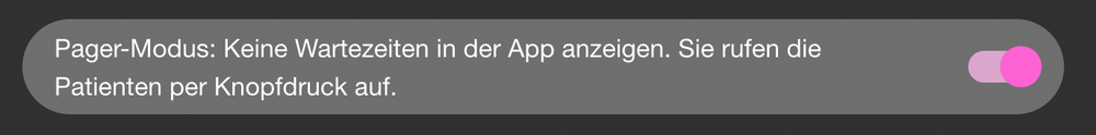 | 20 | ![]() | Pager mode toggle in settings | Settings toggle. Recapture from Wartezimmer settings. | |