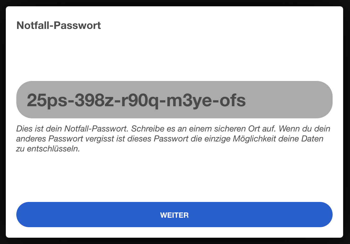 | 46 | ![]() | Backup password display | Shows generated backup password. First-time flow only. | |