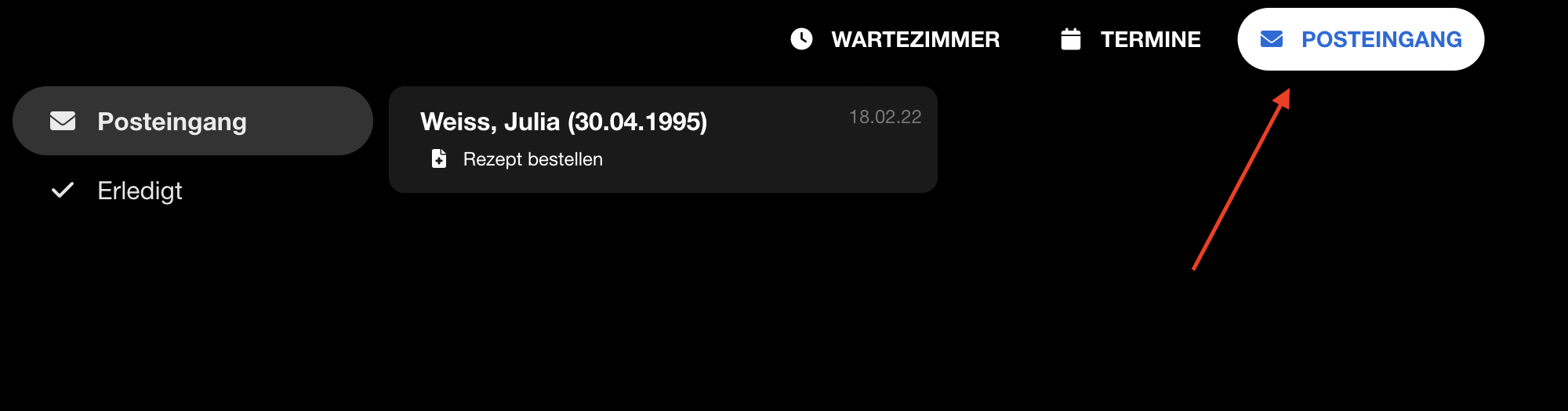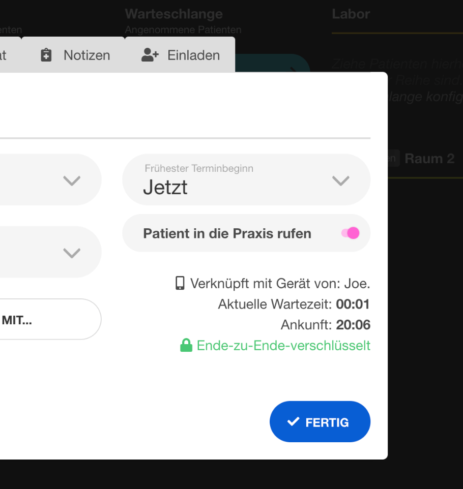 | 22 | ![]() | "Call me" button in queue manager | Shows the "Jetzt rufen" button in the practice queue manager. Recapture from queue manager. | |