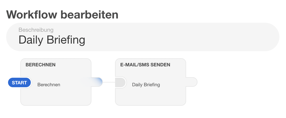 | 77 | ![]() | Daily briefing workflow | Workflow with "Berechnen" step and email step. Niche feature — recapture if workflow editor has changed, otherwise low priority. | |