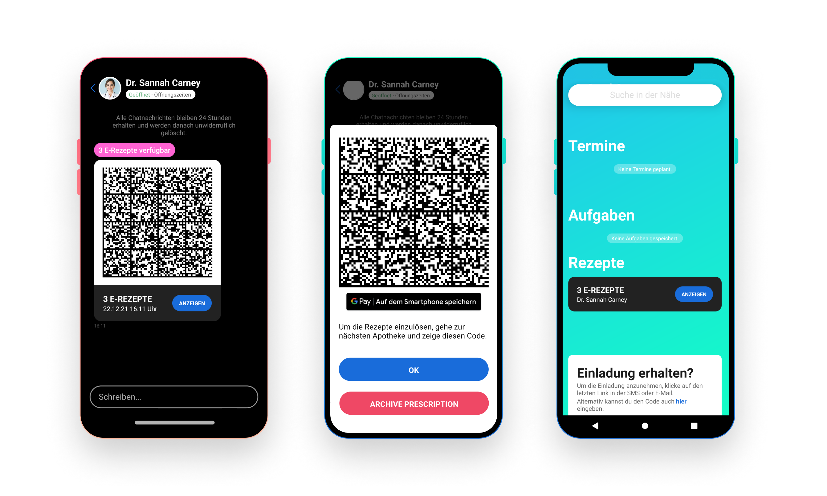 | 81 | ![]() | E-Rezepte in GPay wallet | Patient app screenshot — shows GPay integration. Needs Android sim with GPay. Possibly hard to capture realistically. |