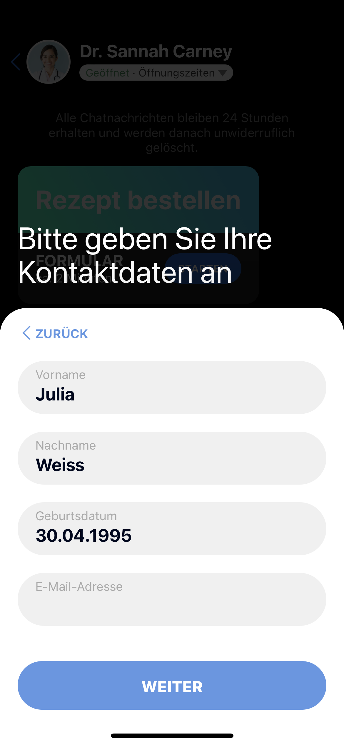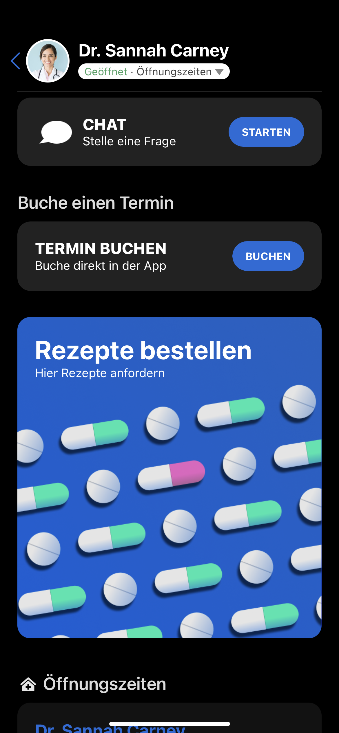 | 88 | ![]() | Prescription reorder on profile | Patient app profile page showing "Rezept vorbestellen" action. Patient app screenshot. |