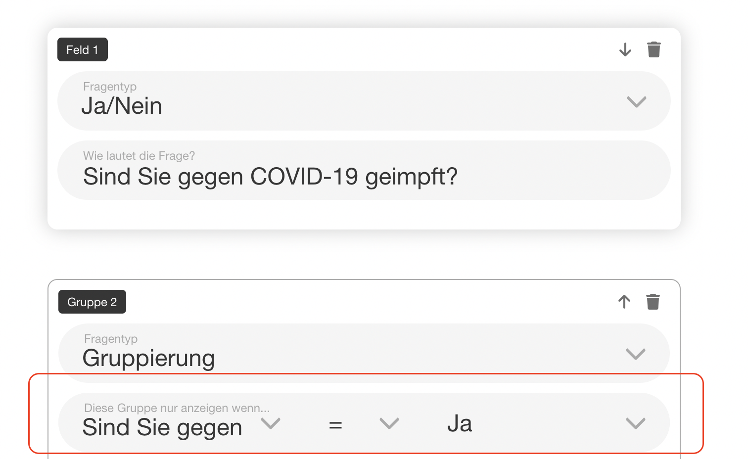| 85 | ![]() | Conditional question | Form editor showing "nur anzeigen wenn" condition. Recapture. | |