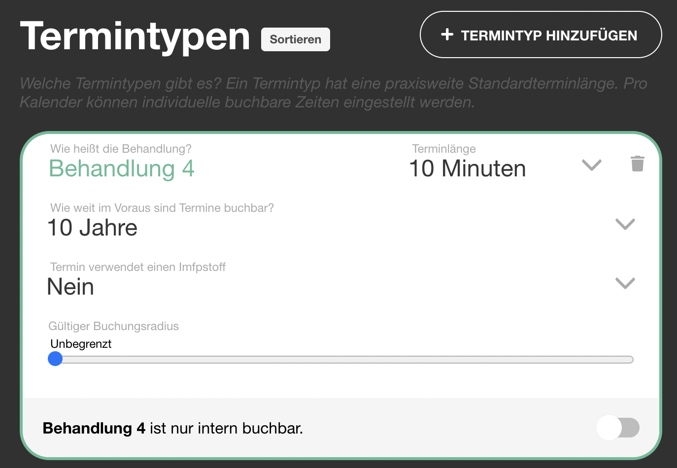 | 35 | ![]() | "Termintyp hinzufügen" button | Button to add new appointment type. Recapture. | |