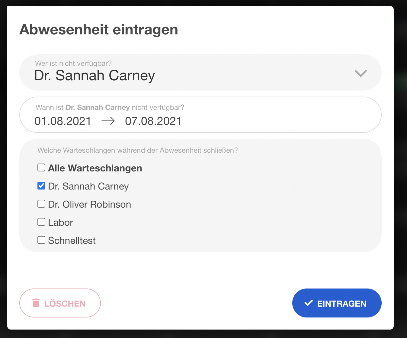 | 39 | ![]() | Absence date range modal | Modal to set absence dates + linked queues. Recapture. | |