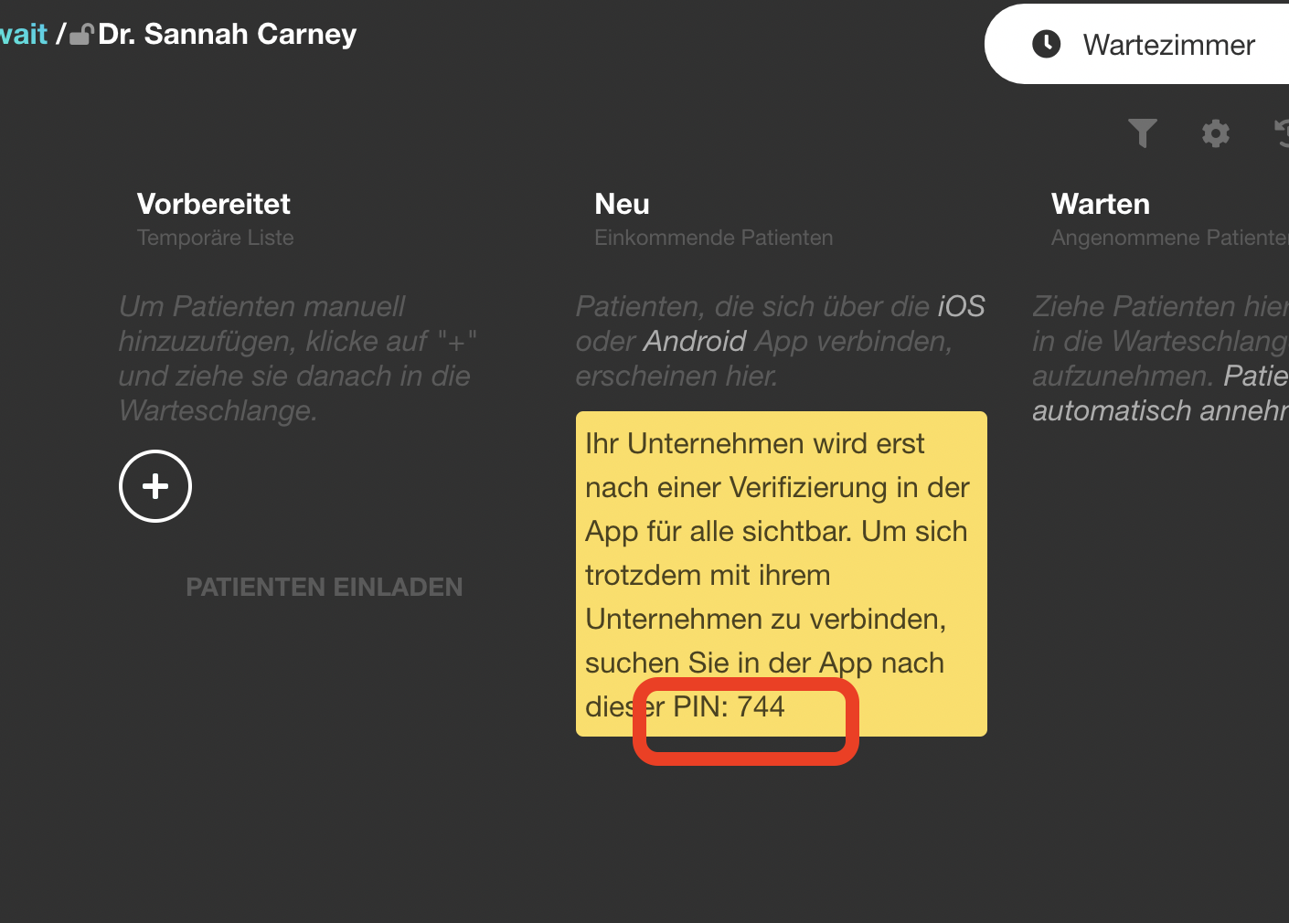 | 14 | ![]() | Personal invitation UI | Shows the "Einladen" tab in patient detail. Recapture from queue manager patient view. | |