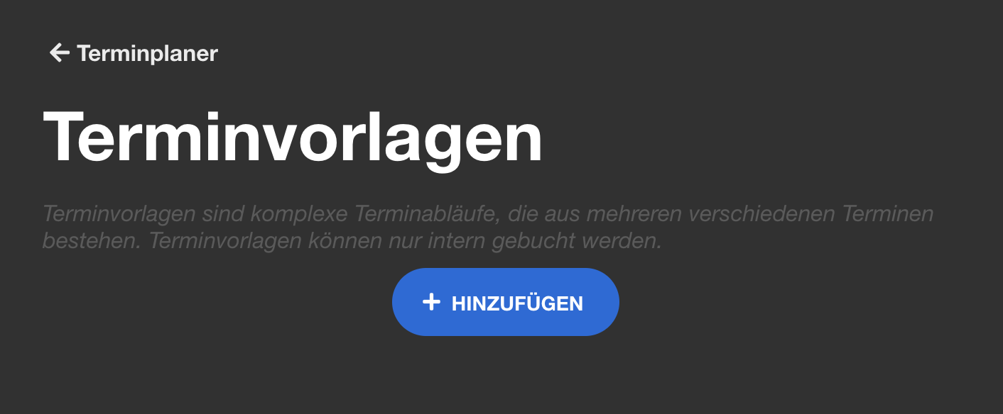 | 40 | ![]() | "Hinzufügen +" button for templates | Button in Terminvorlagen settings. Recapture. | |