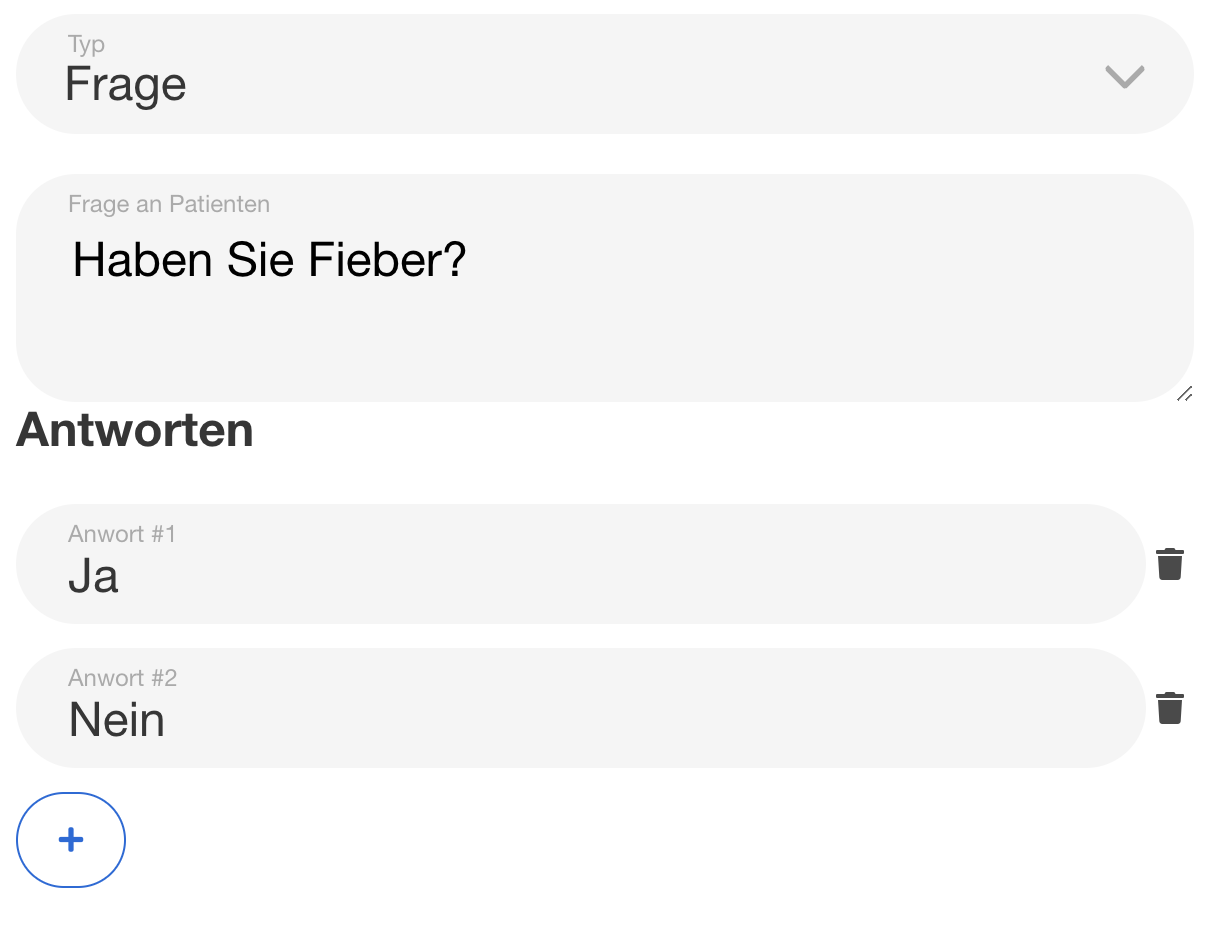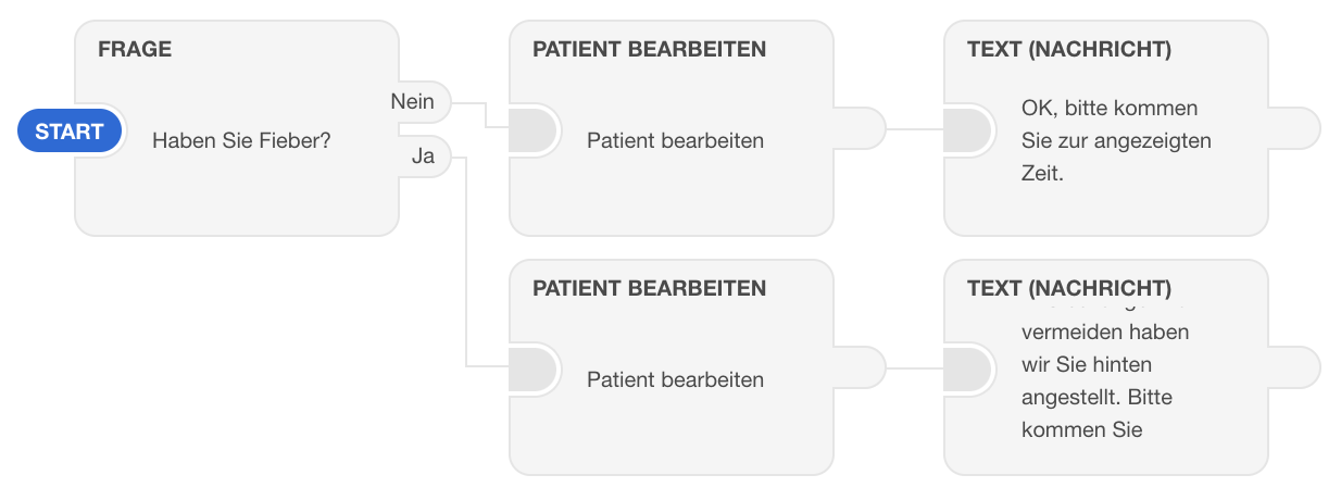 | 66 | ![]() | "Haben Sie Fieber?" question | Configured question node. Recapture with same example. | |