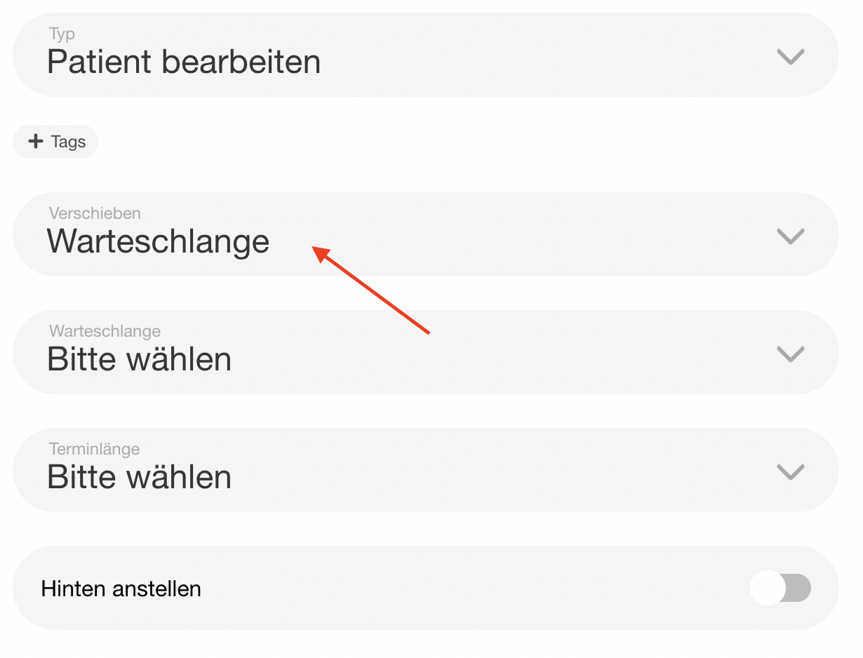 | 72 | ![]() | Move to last + tag | Patient bearbeiten with tag + hinten anstellen. Recapture. | |